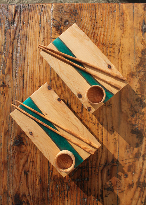 Ispirato dalle venature del legno e dalle pietre del mare. Dalla versatilità della resina e dalla lucentezza dei metalli.